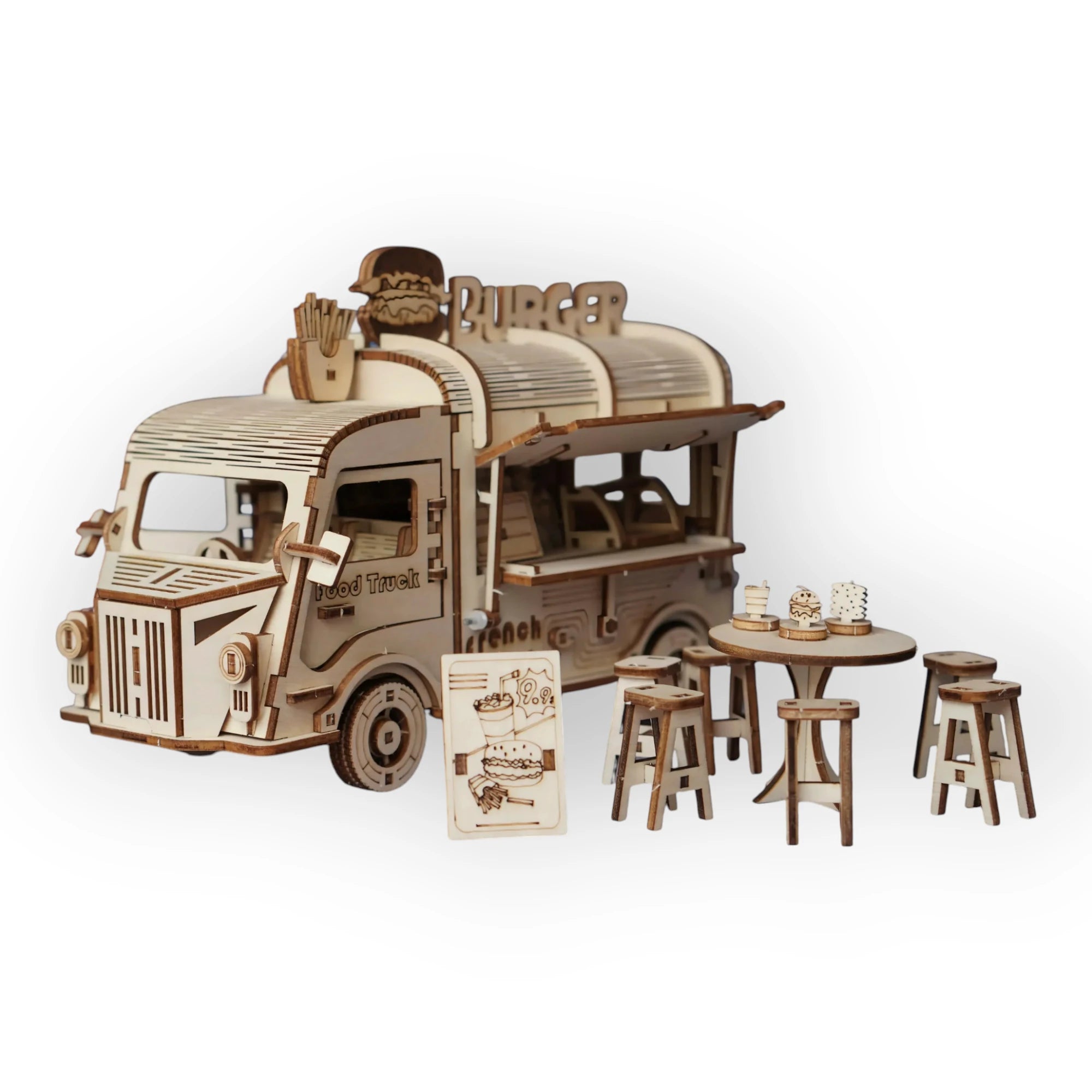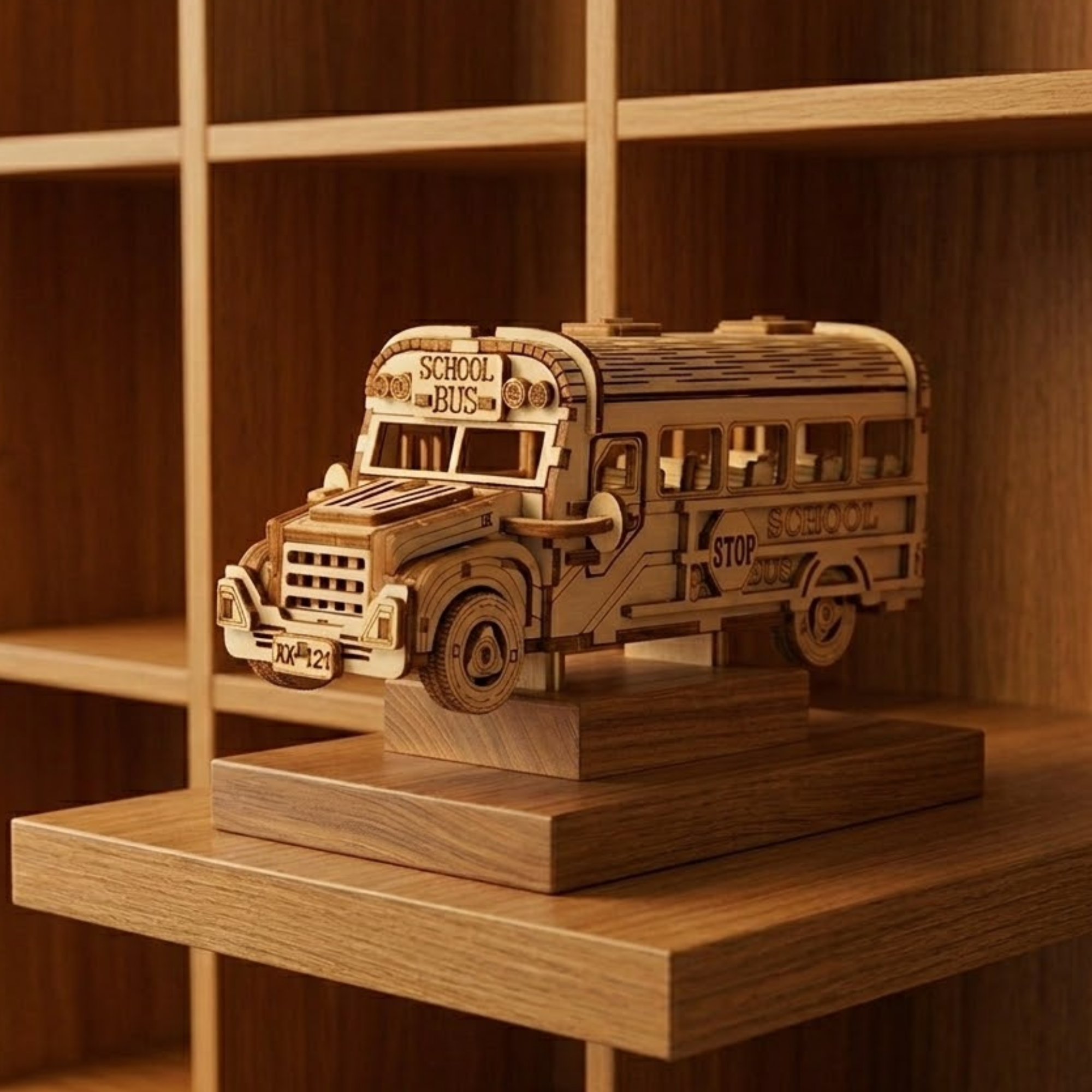 Each model is a decorative piece created with precision and artisanal sensibility, transforming iconic vehicles into wooden miniatures with a warm and timeless charm.